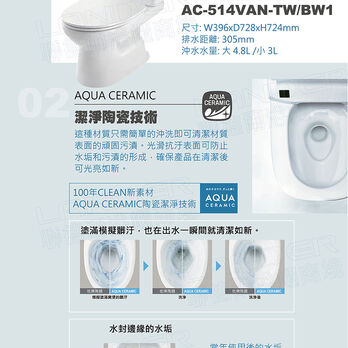 【INAX】分體馬桶AC-514VAN-TW-BW1(潔淨陶瓷技術、渦流式沖水、緩降便座、金級省水)