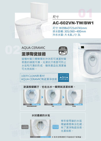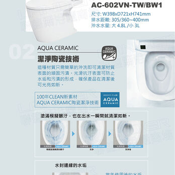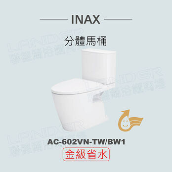 【INAX】分體馬桶AC-602VN-TW-BW1(潔淨陶瓷技術、無邊框缽緣、強力漩渦沖水、金級省水)
