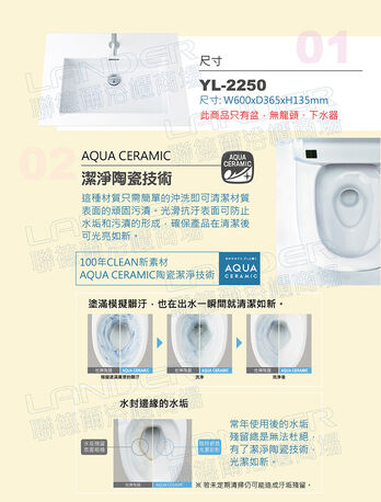 【INAX】日本原裝 下嵌型面盆YL-2250(潔淨陶瓷技術、超奈米釉藥)