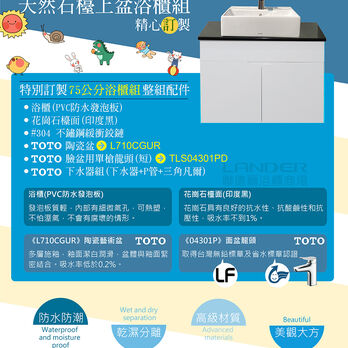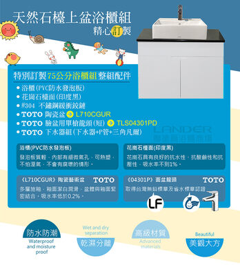 【TOTO】浴櫃組75公分-TOTO-L710CGUR天然石台上盆浴櫃組+TOTO龍頭TLS04301PD《DR-75Y-TO-710CGUR-04301》