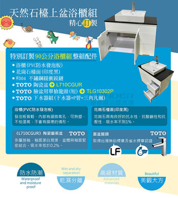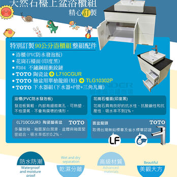 【TOTO】浴櫃組90公分-TOTO-L710CGUR天然石台上盆浴櫃組+TOTO龍頭TLG10302P《DR-90Y-TO-710CGUR》