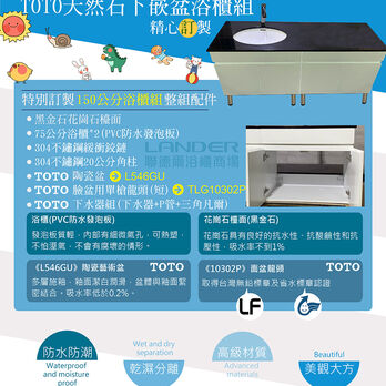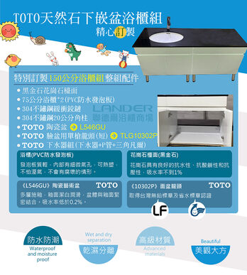 【TOTO】浴櫃組150公分-TOTO-L546GU下嵌盆黑金石浴櫃組《HDT-150AG-546-10302P》