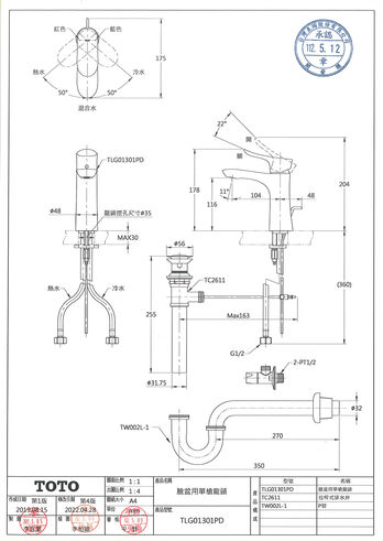 如安裝後有任何瑕疵漏水,請上TOTO官網報修。