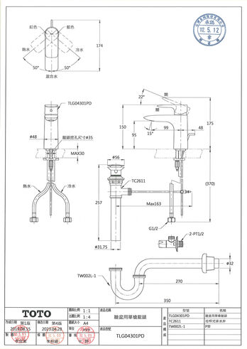 如安裝後有任何瑕疵漏水,請上TOTO官網報修。