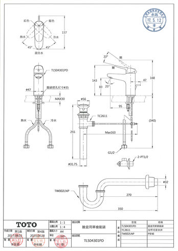 【TOTO】臉盆用單槍龍頭 LF系列 TLS04301PD(普級省水標章、LF無鉛標章、附拉桿式排水零件)