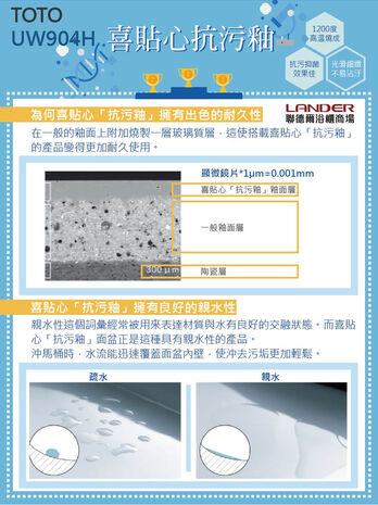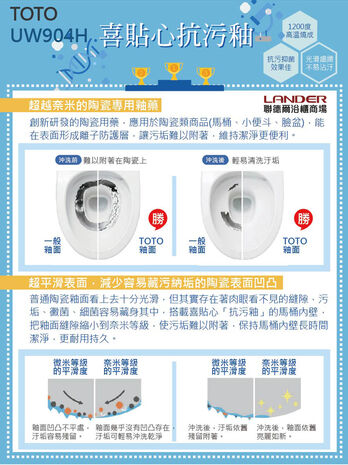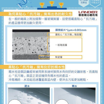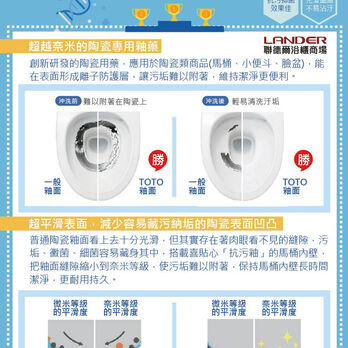 - 減少容易藏污納垢的陶瓷表面凹凸