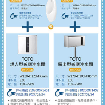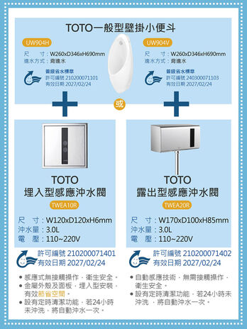 【TOTO】一般型壁掛小便斗+沖水閥(UW904H+TWEA10R/UW904V+TWEA20R)