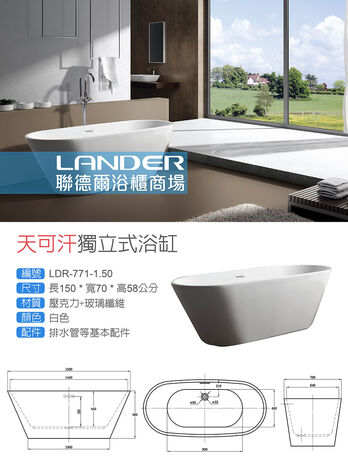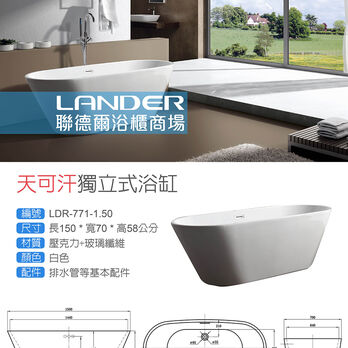 聯德爾《LDR-771-150》天可汗獨立式浴缸-150CM