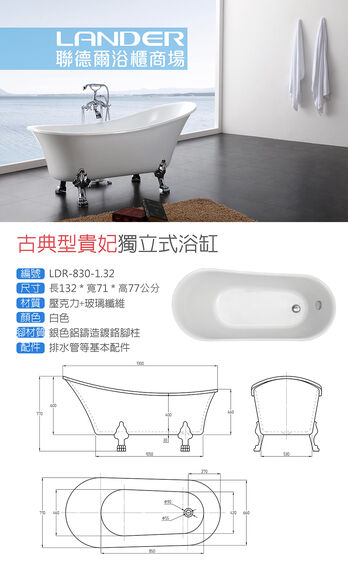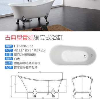 聯德爾《LDR-830-1.30》古典型貴妃獨立式浴缸130公分-售完
