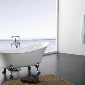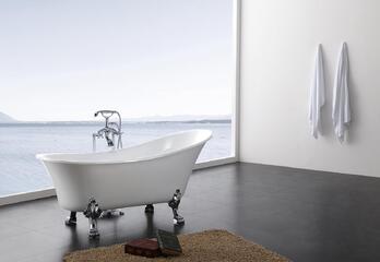 獨立式浴缸不需砌牆、不必固定在牆面,造型簡潔優雅,設置相對於簡單容易