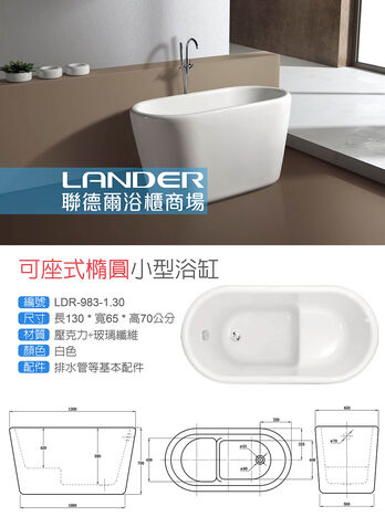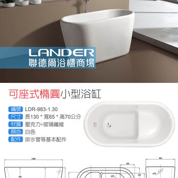聯德爾《LDR-983-1.30》可座式橢圓小型浴缸-130CM-售完
