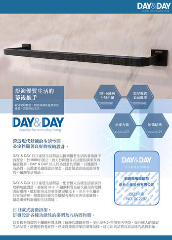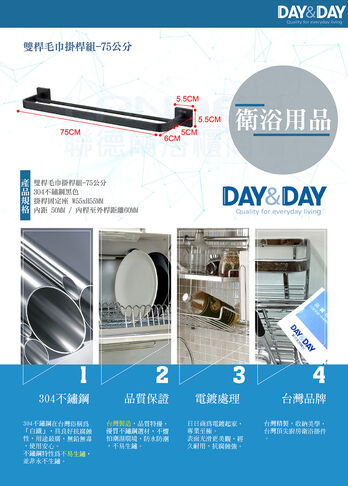 DAY & DAY 《C0022BK-75》雙桿毛巾掛桿組-75公分