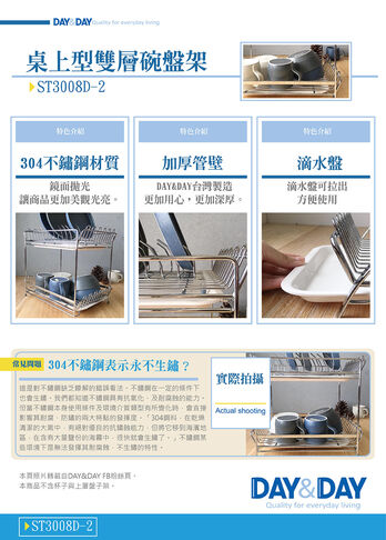 DAY & DAY 《ST3008D-2》桌上型雙層碗盤架
