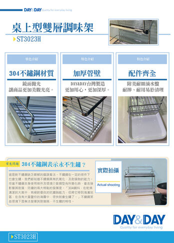DAY & DAY 《ST3023H》桌上型雙層調味架-附滴水盤