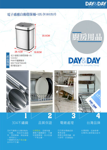DAY & DAY 《V1012LF》電子感應自動環保桶