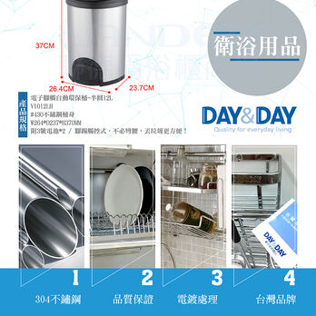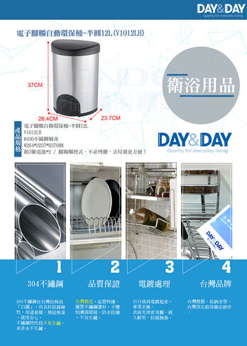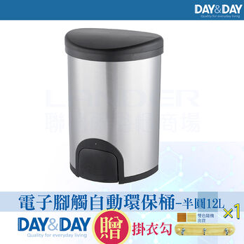 DAY & DAY 《V1012LH》電子腳觸自動環保桶-半圓12L