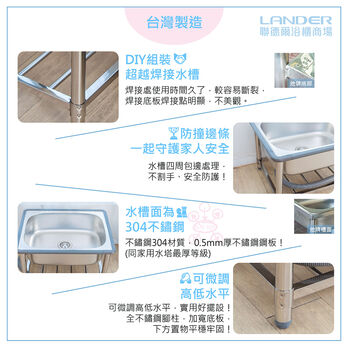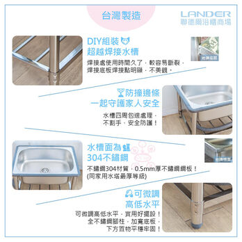 - 設有調整腳座,可依需求微調水槽高度及水平