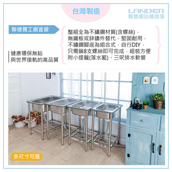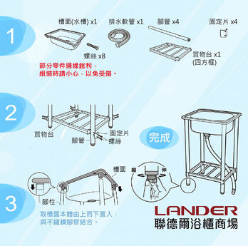 - 設有調整腳座,可依需求微調水槽高度及水平