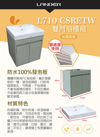 TOTO L710CSR雙門浴櫃組-舊米黃(盆+櫃/不含龍頭配件/台灣製造)