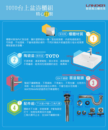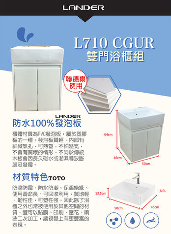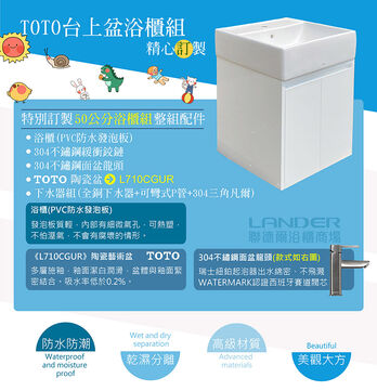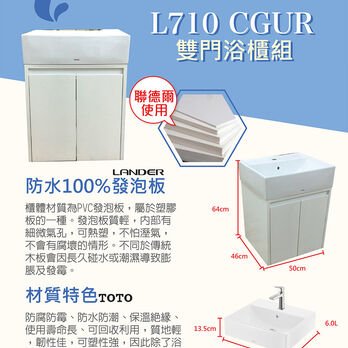 【TOTO】浴櫃組50公分-TOTO-L710CGUR浴櫃組-白色(盆+櫃/含304龍頭配件/含下水器配件)