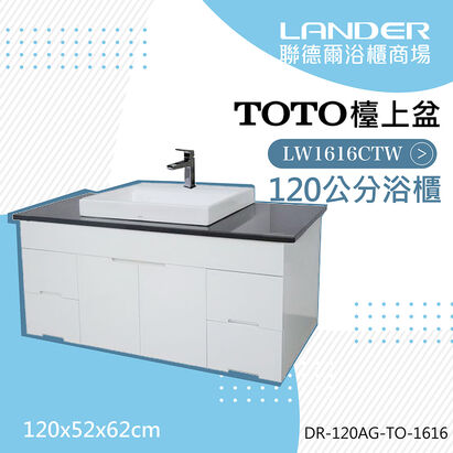 【TOTO】浴櫃組120公分-TOTO-LW1616CTW檯上盆-黑金石浴櫃組-TOTO龍頭TLG10302P《DR-120AG-TO-LW1616CTW》