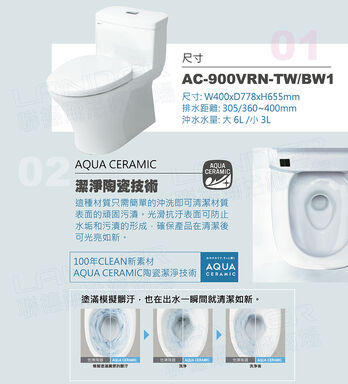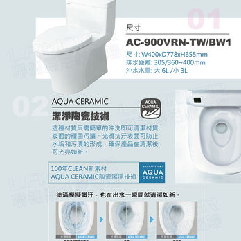 【INAX】單體馬桶AC-900VRN-TW-BW1(潔淨陶瓷技術、雙漩渦沖水、緩降便座、普級省水)