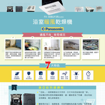 【Panasonic 國際牌】FV-30BUY3R/FV-30BUY3W 陶瓷加熱 浴室乾燥暖風機 有線遙控(不含安裝/原廠保固/乾燥烘衣)