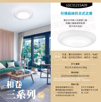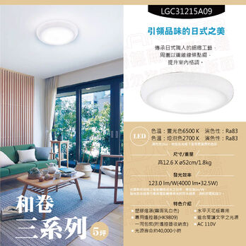 【Panasonic 國際牌】LED吸頂燈-三系列-和卷-LGC31215A09(日本製造、原廠保固、調光調色增亮模式)
