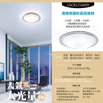 【Panasonic 國際牌】LED吸頂燈-八系列-大光亮-大氣-LGC81210A09(日本製造、原廠保固、調光調色)