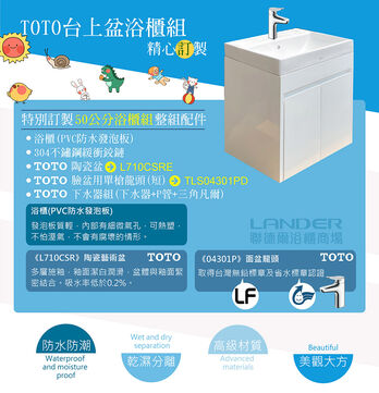 【TOTO】浴櫃組50公分-TOTO-L710CSRETW浴櫃組-白色+TOTO龍頭TLS04301PD《710CSRETW-04301PD》