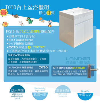 【TOTO】浴櫃組50公分-TOTO-L710CSRETW浴櫃組-白色(盆+櫃/含304龍頭配件/含下水器配件)《710CSRETW-W-807》