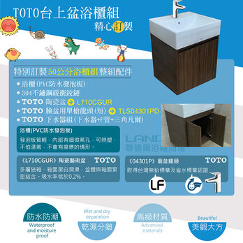 【TOTO】浴櫃組50公分-TOTO-L710CGUR-C-浴櫃組-深咖啡(盆+櫃/含TOTO龍頭配件/含下水器配件)《L710CGUR-C-04301PD》
