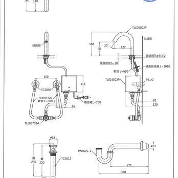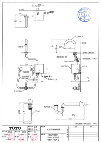 【TOTO】臉盆用感應龍頭 TLE29002P-冷熱(龍頭+AC-110V+調溫閥組)