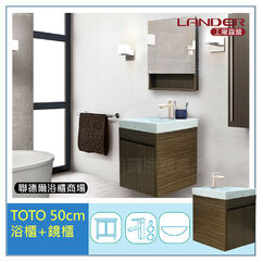【TOTO】深咖啡浴櫃組50公分-TOTO-L710CSRETW-C+50公分鏡櫃(盆+櫃+304不鏽鋼龍頭+下水器配件組+鏡櫃)《TP-48D-710CSR-C》