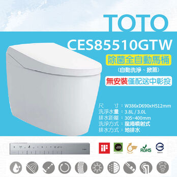 【TOTO】除菌全自動馬桶CES85510GTW(電解除菌水、自動掀蓋、洗淨)