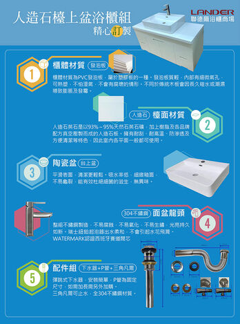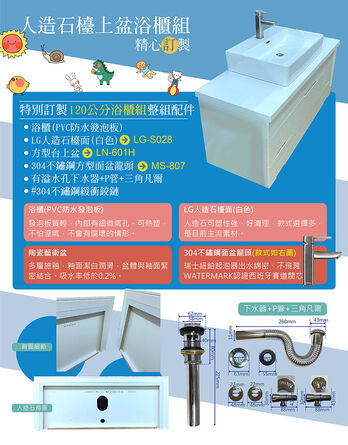 【聯德爾】LG人造石檯面+台上盆浴櫃組120公分(防水發泡板 方型台上盆 人造石檯面)