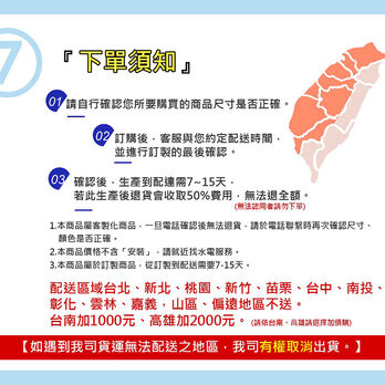 ※若出現商品瑕疵,請於七天內通知我們進行換貨,但換貨的安裝費用、拆卸費用、水電費用,不在我們的服務範圍中。