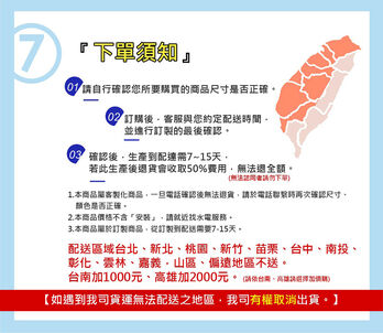 ※若出現商品瑕疵,請於七天內通知我們進行換貨,但換貨的安裝費用、拆卸費用、水電費用,不在我們的服務範圍中。