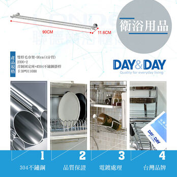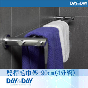 品名:雙桿毛巾架-90cm(4分管) 貨號:2390-2 材質:青銅固定座+#304不鏽鋼掛桿 尺寸:∮38*D116MM