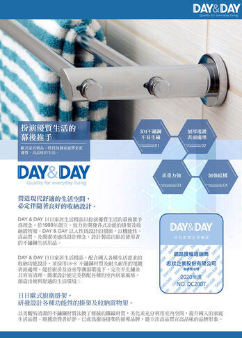 DAY & DAY 《2390-2》雙桿毛巾架-90cm(4分管)17602200立即購買產品敘述品名:雙桿毛巾架-90cm(4分管)貨號:2390-2材質:青銅固定座+#304不鏽鋼掛桿尺寸:∮38*D116MM所有商品INAX伊奈LG人造石Panasonic國際牌TOTO系列TOTO馬桶TOTO面盆(壁掛、下崁)TOTO壁掛小便斗TOTO浴櫃組TOTO龍頭組、溫控淋浴浴櫃組掛壁式浴櫃組(吊櫃)HCG浴櫃組落地式浴櫃組(立櫃)其它檯上洗臉盆陶瓷檯上洗臉盆玻璃檯上洗臉盆水龍頭廚房用龍頭面盆用龍頭沐浴用龍頭其它鏡組獨立式浴缸水槽水槽面陽洗台洗衣水槽不鏽鋼工作平台馬桶其它用品浴室配件安全扶手其它掛勾DAY&DAY出清/展示/瑕疵