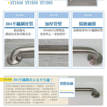 品名:絲光 安全扶手-50CM 貨號:ST1650 材質:#304 不鏽鋼 尺寸:50CM/10分管