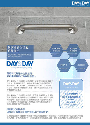DAY & DAY 《ST1650》絲光 安全扶手-50CM15201900立即購買產品敘述品名:絲光 安全扶手-50CM貨號:ST1650材質:#304 不鏽鋼尺寸:50CM/10分管所有商品INAX伊奈LG人造石Panasonic國際牌TOTO系列TOTO馬桶TOTO面盆(壁掛、下崁)TOTO壁掛小便斗TOTO浴櫃組TOTO龍頭組、溫控淋浴浴櫃組掛壁式浴櫃組(吊櫃)HCG浴櫃組落地式浴櫃組(立櫃)其它檯上洗臉盆陶瓷檯上洗臉盆玻璃檯上洗臉盆水龍頭廚房用龍頭面盆用龍頭沐浴用龍頭其它鏡組獨立式浴缸水槽水槽面陽洗台洗衣水槽不鏽鋼工作平台馬桶其它用品浴室配件安全扶手其它掛勾DAY&DAY出清/展示/瑕疵