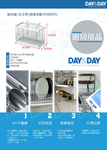 品名:餐具桶-長方型-附滴水盤 貨號:ST3003TL 材質:#304 不鏽鋼 尺寸:W212*D107*H152MM 備註:附滴水盤