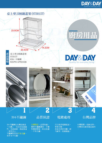 品名:桌上型刀柄鍋蓋架 貨號:ST3015T 材質:#304 不鏽鋼 尺寸:W203*D142*H235MM