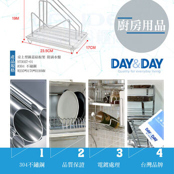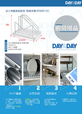 品名:桌上型鍋蓋砧板架 附滴水盤 貨號:ST3027-01 材質:#304 不鏽鋼 尺寸:W235*D170*H190MM