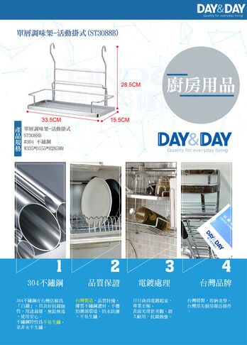 DAY & DAY 《ST3088B》單層調味架-活動掛式