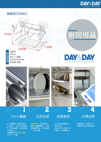 品名:海綿架 貨號:ST3201 材質:#304 不鏽鋼 尺寸:W155*D73*H87MM 備註:附吸盤 螺絲