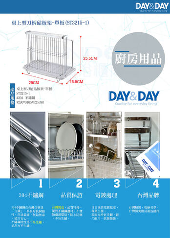 品名:桌上型刀柄砧板架-單板 貨號:ST3215-1 材質:#304 不鏽鋼 尺寸:W290*D165*H255MM