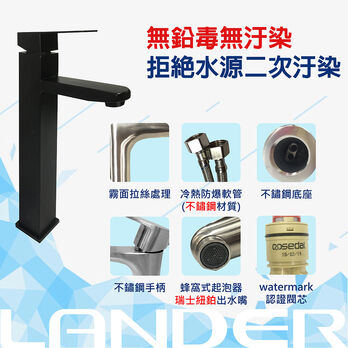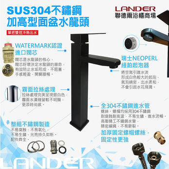 聯德爾《MS-501》304不鏽鋼黑色加高面盆水龍