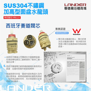 內容物:304不鏽鋼水龍頭、304不鏽鋼冷熱水管、304不鏽鋼固定座。